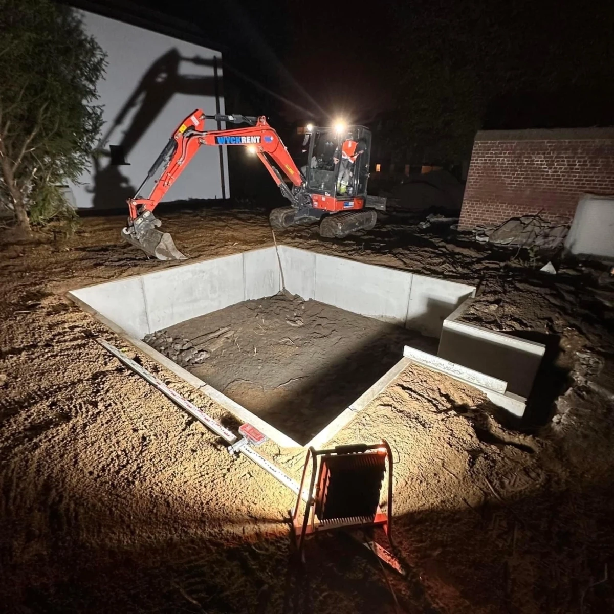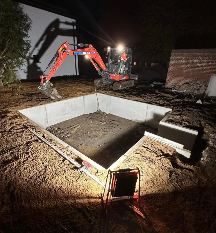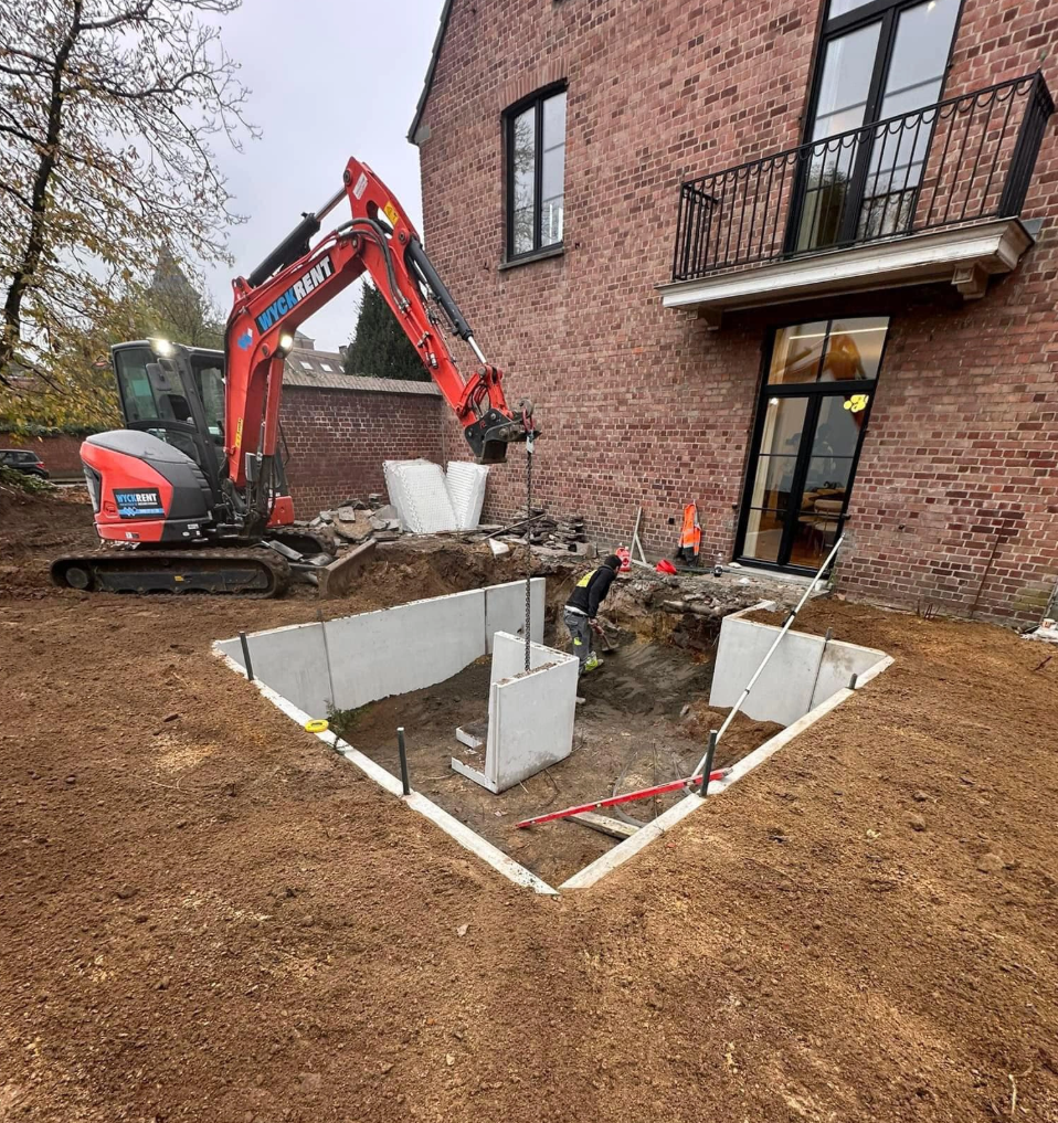 Bij Bouwonderneming B&A verzorgen we alle voorbereidende grondwerken: uitgraven van bouwputten en sleuven, funderingswerken, riolering en drainage, het plaatsen van regenwater- en septische putten, aanvullen, verdichten en nauwkeurig nivelleren.